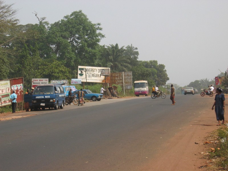 The road to the left leads to the center of Nsukka town. The fork to the right leads to Opi town. The highway continues towards the heart of northern nigeria